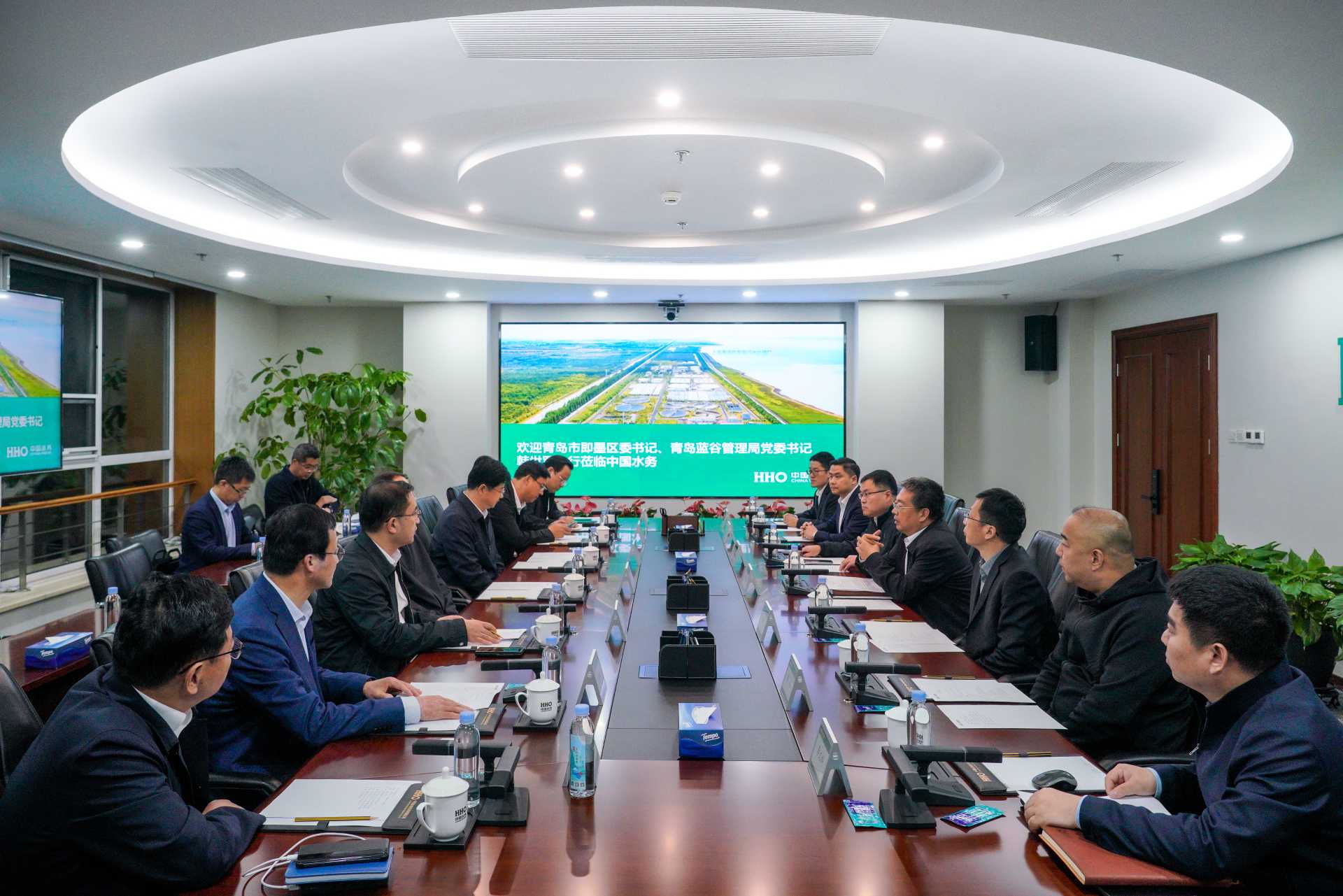 王明海對(duì)韓世軍一行的到來表示熱烈歡迎,簡要介紹了中國電建、中國水務(wù)總體情況。他表示,中國水務(wù)具有中國電建和水利部兩大核心股東,能夠發(fā)揮“投建營”一體化能力和全產(chǎn)業(yè)鏈一體化優(yōu)勢(shì),為地方政府提供整體解決方案。經(jīng)過多年在水務(wù)市場深耕細(xì)作,中國水務(wù)在城鄉(xiāng)水務(wù)一體化、供排水一體化等方面積累了豐富的技術(shù)和運(yùn)營經(jīng)驗(yàn)。中國水務(wù)愿意發(fā)揮自身優(yōu)勢(shì)深入?yún)⑴c即墨區(qū)水務(wù)一體化工作,做好即墨區(qū)“水”文章。