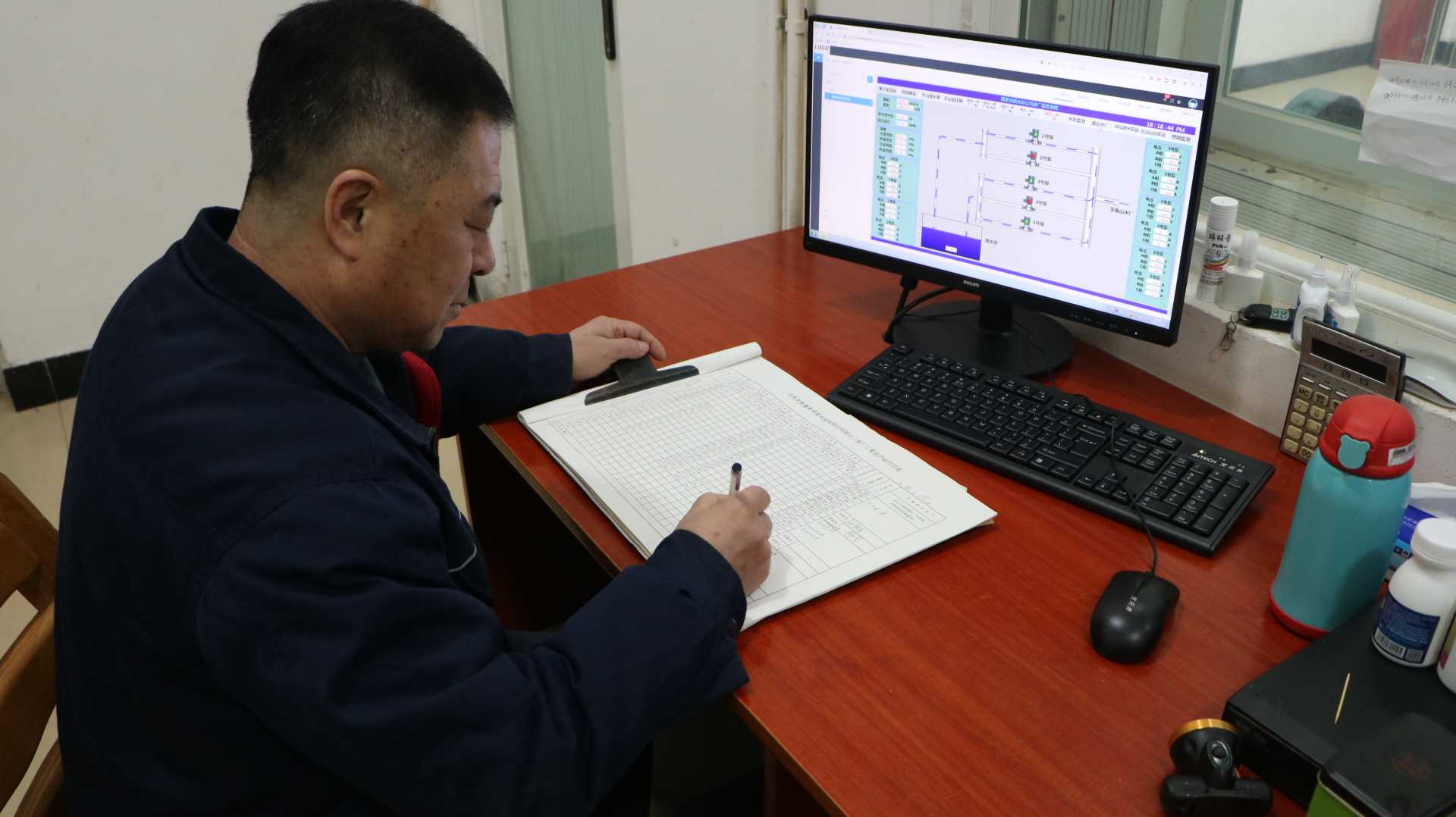 今年是周成國在山東水務(wù)蓬萊華建公司水廠工作的第16個年頭。2月2日是北方小年,這天大部分居民都會與家人團(tuán)聚,用水量較平時會有所增加。這天一早,周成國就全身心投入用水保障工作,時刻監(jiān)測著水質(zhì)水量情況。作為水廠一線工人,他承擔(dān)著維系供水泵房運(yùn)行的重大責(zé)任,必須一刻不停的盯緊水壓、水位數(shù)據(jù)并按時記錄,一旦發(fā)現(xiàn)問題要及時上報,絲毫不敢懈怠?!翱吹绞忻窈壬戏判乃瑯废韴F(tuán)圓夜,即使不能與家人團(tuán)聚,我的心里也高興。”周成國說。