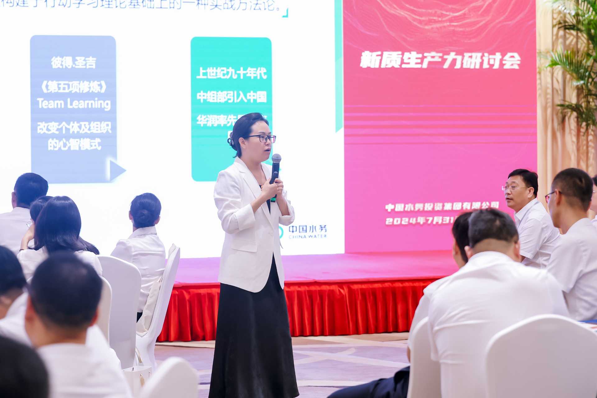 本次研討會采用團隊學習法模式,由中化創(chuàng)新研究院李薇老師團隊進行團隊學習法導入,并組成8支研討小組。各小組圍繞“中國水務要具備和發(fā)展的新質生產(chǎn)力是什么”、“期望達到的目標”、“實現(xiàn)路徑及關鍵舉措”等核心議題開展討論。