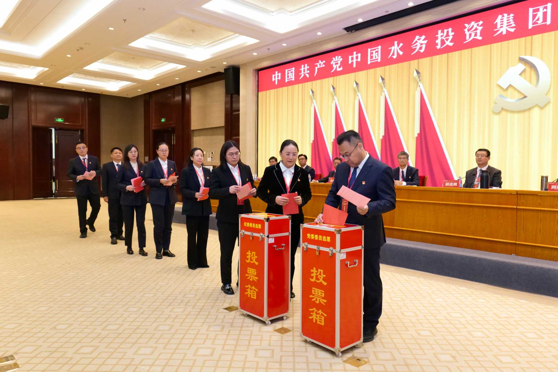 大會采用無記名投票和差額選舉的方式,選舉產(chǎn)生了中國共產(chǎn)黨中國水務(wù)投資集團(tuán)有限公司第一屆委員會和紀(jì)律檢查委員會,表決通過了“兩委”工作報告決議,圓滿完成各項(xiàng)議程。