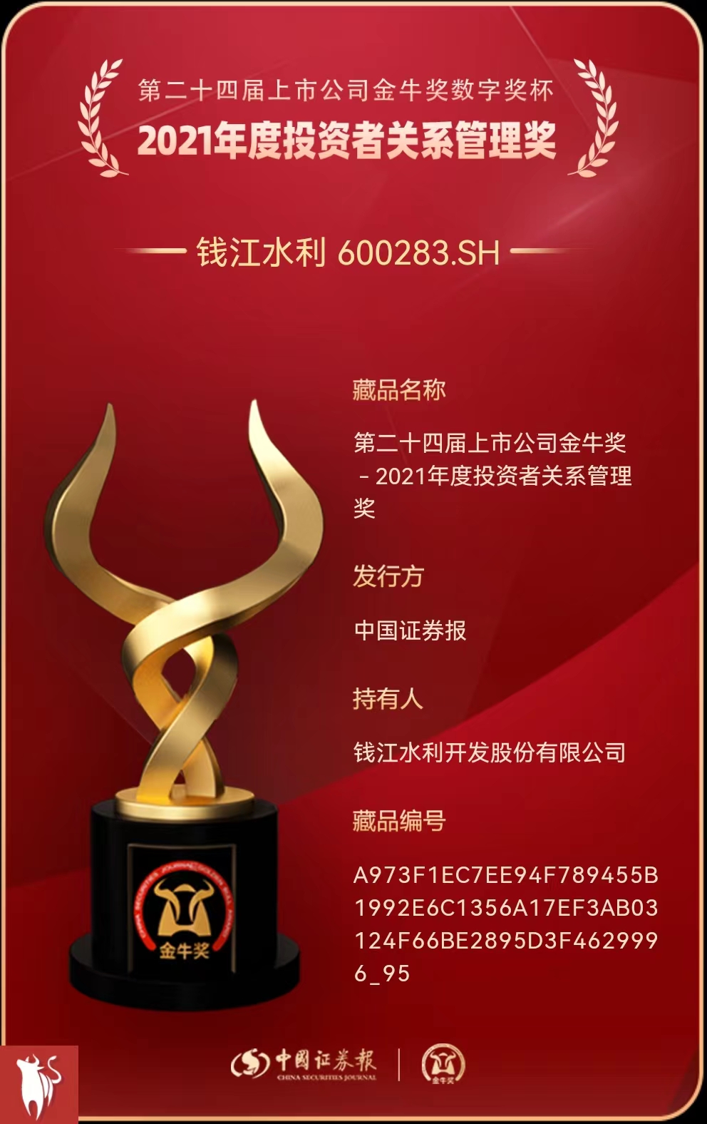 近日,由中國(guó)證券報(bào)、??谑姓?、??趪?guó)家高新區(qū)聯(lián)合主辦的“2022上市公司高質(zhì)量發(fā)展論壇暨第24屆上市公司金牛獎(jiǎng)?lì)C獎(jiǎng)典禮”在??谂e行,公司憑借在資本運(yùn)作、信息披露、公共關(guān)系管理、投資者關(guān)系管理等方面的優(yōu)異表現(xiàn),榮獲第24屆上市公司金牛獎(jiǎng)“2021年度投資者關(guān)系管理獎(jiǎng)”。