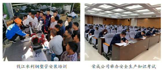 截至目前,錢江水利、江蘇水務、榮成公司等公司組織開展鋼塑管安裝培訓、消防安全知識培訓、工傷相關培訓等38次,共計576人次參加;集團各二級公司組織各類安全生產檢查25次,目前大部分隱患已整改完畢,暫未完成整改隱患均已按照“五落實”要求落實整改方案,限期完成。