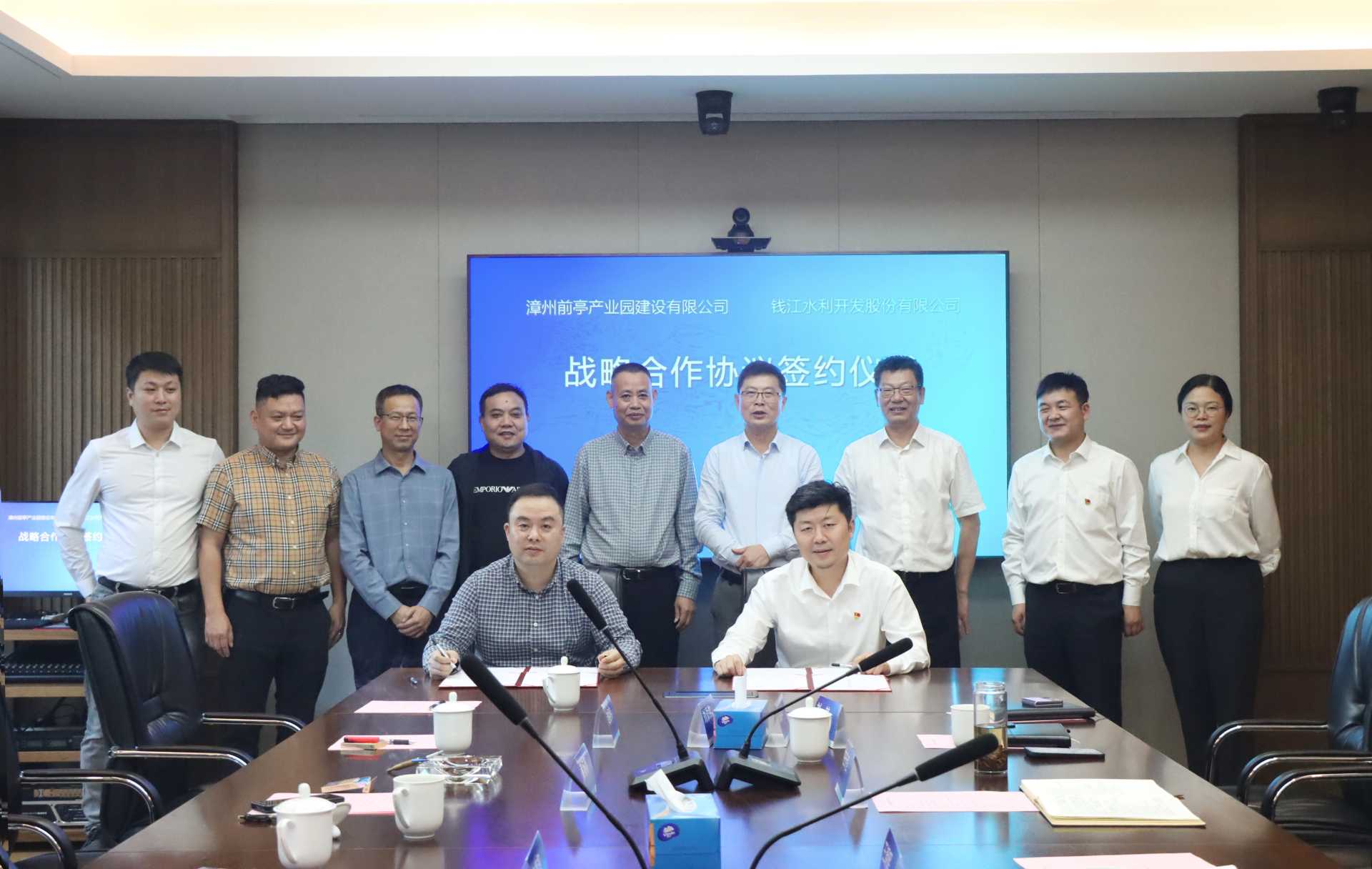 10月23日,錢江水利開發(fā)股份有限公司與漳州前亭產(chǎn)業(yè)園建設(shè)有限公司戰(zhàn)略合作框架協(xié)議簽約儀式在杭州舉行,雙方就漳浦前亭工業(yè)園水務(wù)環(huán)保基礎(chǔ)設(shè)施建設(shè)共建簽訂戰(zhàn)略合作協(xié)議。漳州前亭產(chǎn)業(yè)園建設(shè)有限公司領(lǐng)導(dǎo)黃楊明、宋鎮(zhèn)超,錢江水利黨委書記、總經(jīng)理王天強(qiáng),副董事長王朝暉,黨委委員、副總經(jīng)理劉堃出席簽約儀式。
