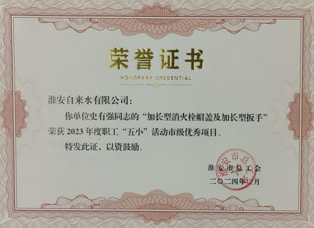 近日,淮安水司選報(bào)的三個(gè)項(xiàng)目榮獲市級(jí)“五小”活動(dòng)優(yōu)秀項(xiàng)目,劉軍、史有強(qiáng)、陳正峰榮獲“淮安市五一創(chuàng)新能手”稱號(hào)?;窗菜境掷m(xù)發(fā)揮示范引領(lǐng)作用,鼓勵(lì)職工運(yùn)用創(chuàng)新思維,解決實(shí)際問題,推動(dòng)管理水平精細(xì)化、智能化、高效化。同時(shí),尊重職工“首創(chuàng)”精神,助力成果轉(zhuǎn)化,在保護(hù)供水設(shè)施、降低產(chǎn)銷差率等方面取得新突破。