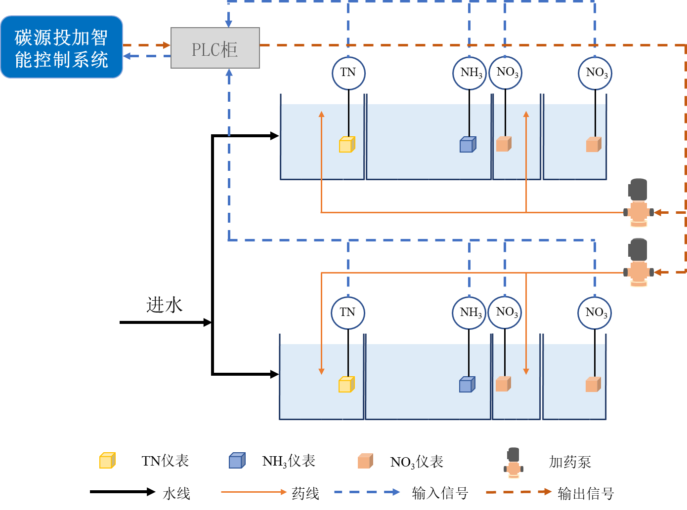 溧陽(yáng)水務(wù)嚴(yán)格落實(shí)“精打細(xì)算,開源節(jié)流”的成本理念,狠抓節(jié)能降耗,助推低碳增效,聯(lián)合上海環(huán)保集團(tuán)對(duì)污水處理自動(dòng)化精確加藥系統(tǒng)進(jìn)行研發(fā),設(shè)計(jì)開發(fā)適用于污水處理廠生物脫氮工藝的碳源投加智能控制系統(tǒng),以污水處理廠進(jìn)出水及工藝過程在線監(jiān)測(cè)數(shù)據(jù)為基礎(chǔ),構(gòu)建基于“前饋+人工智能算法模型+后饋”的軟件算法控制平臺(tái),精細(xì)化碳源投加,確保出水總氮穩(wěn)定達(dá)標(biāo)。項(xiàng)目實(shí)施完成后,預(yù)計(jì)每年可節(jié)約碳源費(fèi)用65萬元,并將形成自有專利技術(shù),以技術(shù)創(chuàng)新推動(dòng)降本增效取得新實(shí)效。