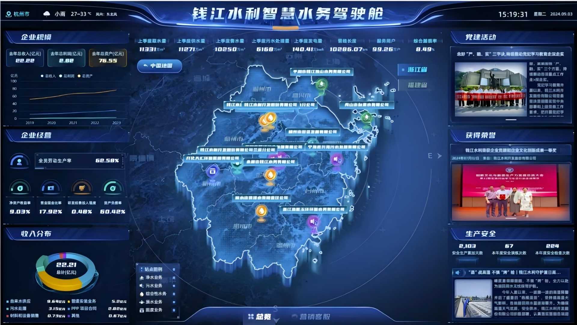 在數(shù)智化水務的浪潮中,錢江水利緊握時代脈搏,將數(shù)字化、智能化深度融入水務運營管理的每一個環(huán)節(jié)。錢江水利構(gòu)建起全方位、多層次的數(shù)智化水務體系,通過引入大數(shù)據(jù)、云計算、人工智能等先進技術(shù),實現(xiàn)了供水、排水、水質(zhì)監(jiān)測、管網(wǎng)運維等全鏈條的智能化管理。