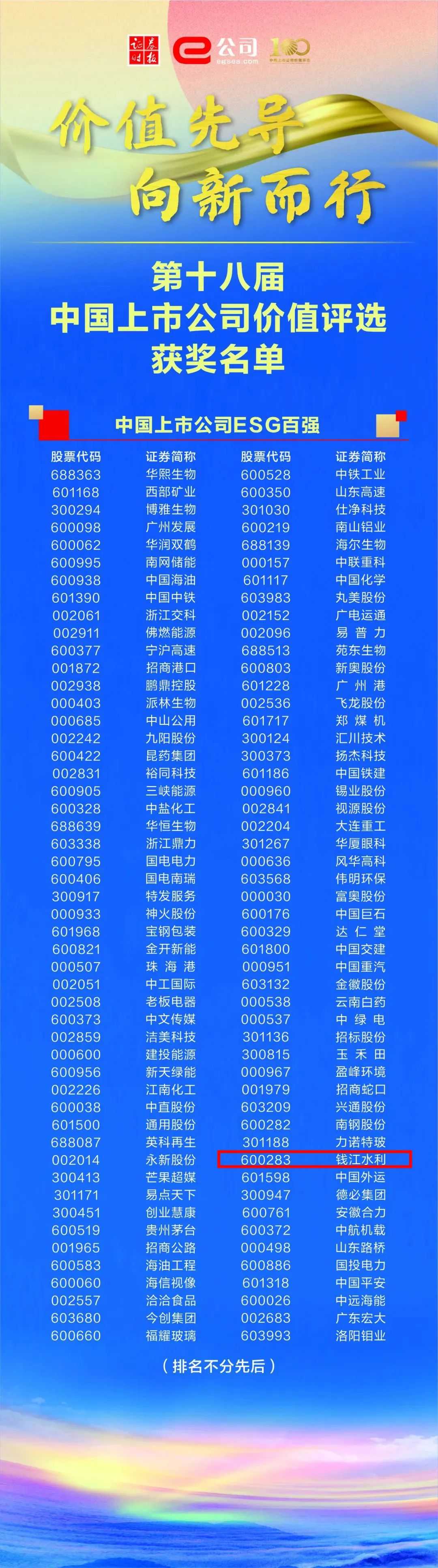 10月24日至25日,由證券時報社主辦的“第十八屆中國上市公司價值論壇暨2024新質(zhì)生產(chǎn)力巡禮”在昆山舉辦,中國水務(wù)所屬錢江水利開發(fā)股份有限公司以卓越的管理水平贏得了市場和投資者的廣泛認可,榮登“2024中國上市公司ESG百強”榜單。
