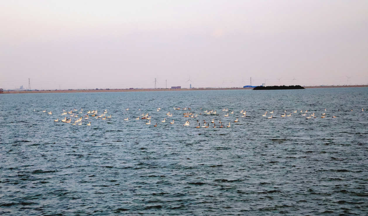 面對(duì)周邊鹽堿地多、生態(tài)脆弱的挑戰(zhàn),濱州北海水庫(kù)選擇了“以林固堿”的修復(fù)路徑。近年來(lái)累計(jì)種植旱柳、白蠟等耐鹽堿苗木2萬(wàn)余株,并結(jié)合每年5至6次的黃河水調(diào)蓄,持續(xù)改善庫(kù)區(qū)小氣候。生態(tài)環(huán)境的持續(xù)向好,使這里成為候鳥(niǎo)南遷的中轉(zhuǎn)站,每年冬季皆有天鵝翩躚而至。
