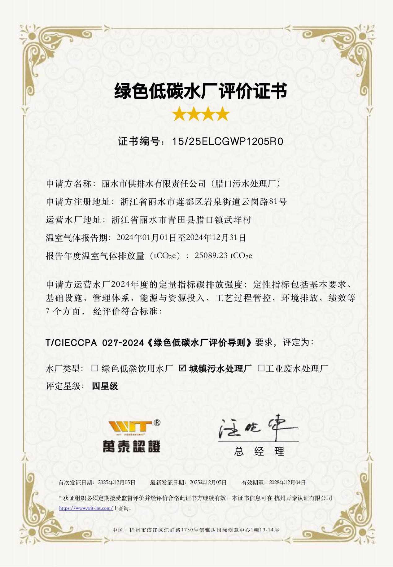 近日,錢江水利所屬麗水供排水臘口污水處理廠獲評“綠色低碳四星級水廠”稱號,標(biāo)志著公司在綠色低碳運(yùn)營管理和節(jié)能降耗方面取得了實(shí)質(zhì)性突破。