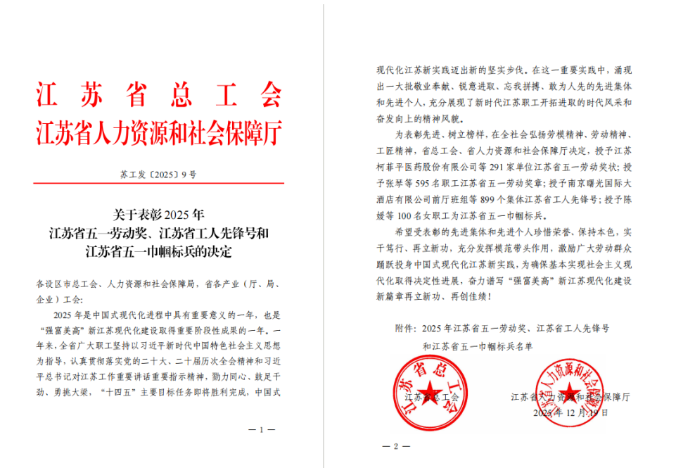 近日,江蘇省總工會、省人社廳公布《關(guān)于表彰2025年江蘇省五一勞動獎、江蘇省工人先鋒號和江蘇省五一巾幗標兵的決定》,華東區(qū)域總部下屬淮安水司水質(zhì)檢測中心憑借突出的專業(yè)能力和高度的責(zé)任擔(dān)當(dāng),榮獲2025年“江蘇省工人先鋒號”稱號。