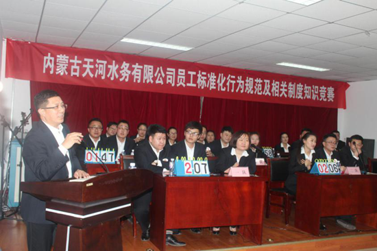 2019年1月22日,內(nèi)蒙古天河水務(wù)有限公司以“對標(biāo)先進(jìn)、查找不足、夯實基礎(chǔ)、提升管理”為主題,舉辦了一場別開生面的“員工標(biāo)準(zhǔn)化行為規(guī)范及相關(guān)制度知識競賽”活動,以寓教于樂的創(chuàng)新形式,檢驗員工對標(biāo)準(zhǔn)化行為規(guī)范、各項規(guī)章制度及安全生產(chǎn)知識的掌握程度。